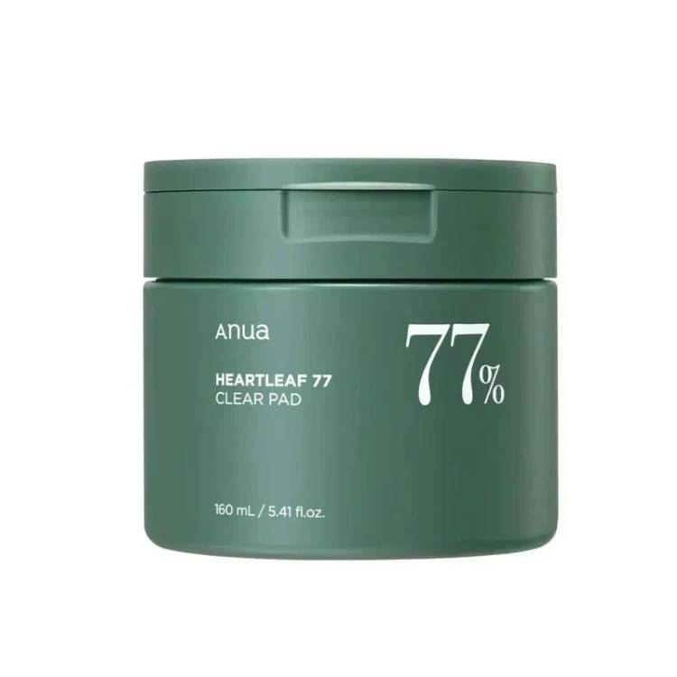 تونر پد پاک کننده و تسکین دهنده Heartleaf 77 آنوا برای لایه برداری ملایم سلولهای مرده از سطح پوست، کاهش جوشهای سرسیاه، سرسفید و منافذ باز و مسدود فرموله شده است.