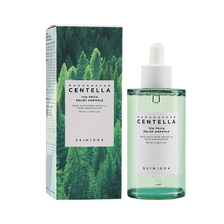 -آمپول Skin1004 Madagascar Centella Tea-Trica Relief Ampole برای پوست های مشکل دار، چرب و تحریک شده که از آکنه رنج می برند در نظر گرفته شده است.
